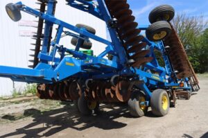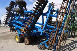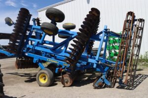 LANDOLL 7431-26 26.5′ VERTICAL TILL 2 ROUND BASKETS W/ FLAT BARS 7” DISC SPACING 12.5L-15F1 TIRES 19 3/4 DISC OR COULTER BLADES, ORIGINAL 20