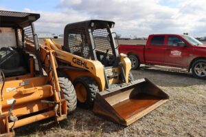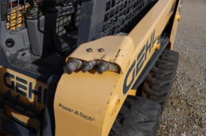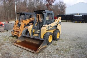 ’15 GEHL R190 ROPS SKIDLOADER, 268 HRS, HAND/FOOT CRTLS/ HYDRUALIC SELF LEVELING TWO SPEED HYDRAGLIDE- HIGH BACK WITH AIR RIDE SUSPENSION 2″ SHOULDER SEAT BELT HYDRAULIC ACTUATED POWERED QUICK ATTACH TIRES 10.00X16.5 8-PLY HD FLOTATION ENGINE BLOCK HEATER INSTALLED YANMAR 052KW 4TNV98C-NMS T4 ENGINE