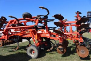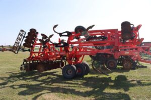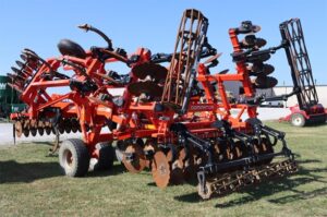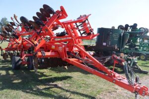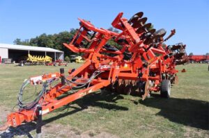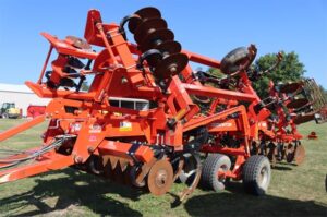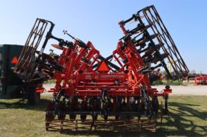 KRAUSE 4855-11 DOMINATOR 16’6″ CUT, TRANS 14’10”, 11 COMBO SHANKS SHANK SPACING 18/46″ 9″ SPACING, FOLDING FRAME GUARDIAN HITCH CAT #4 7″ WING POINTS ROLLING HARROW ROUND BAR